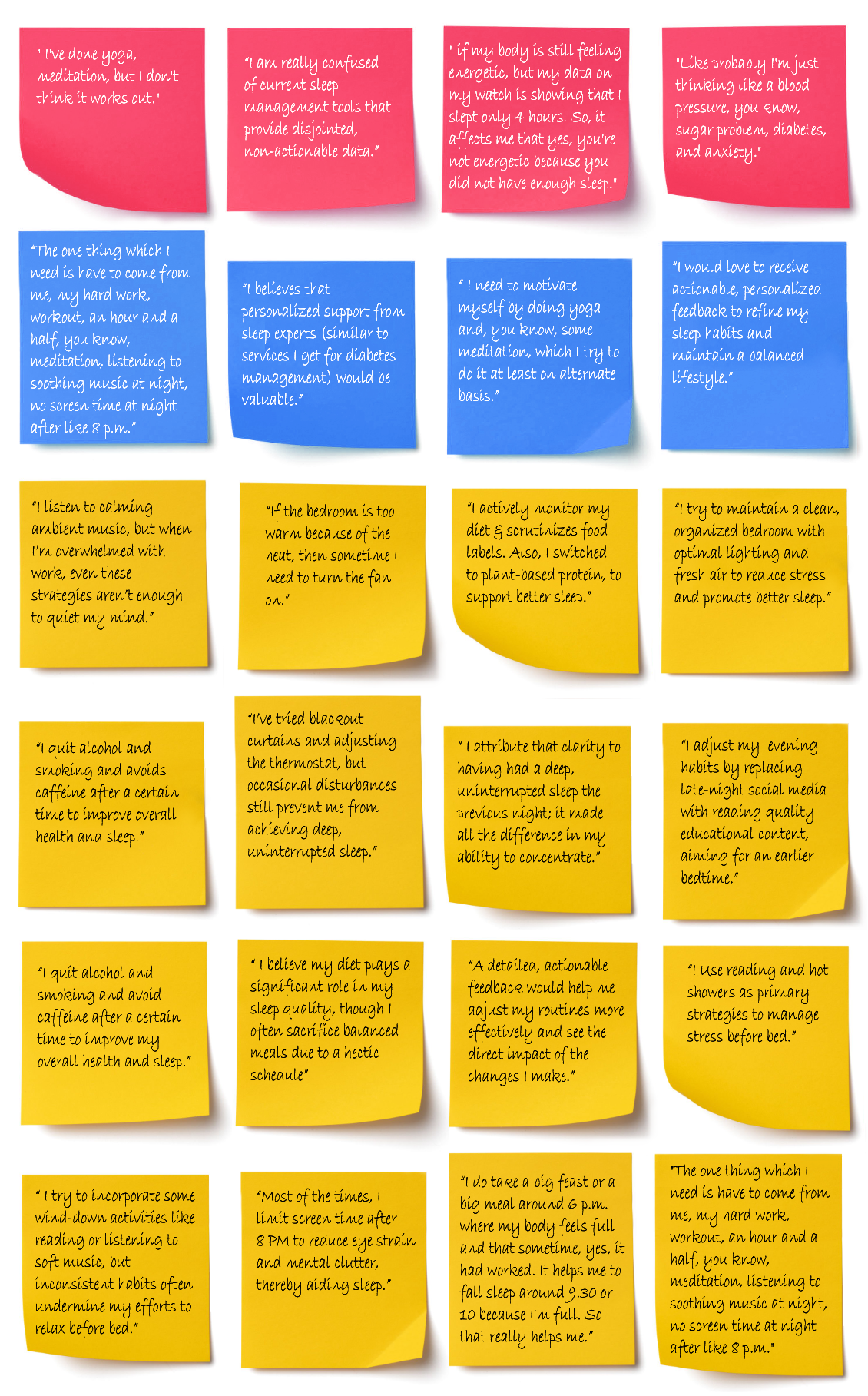 I chose User Interviews as my research methodology because they allow for a direct, in-depth exploration of participant’s personal experiences, motivations, and frustrations around sleep.