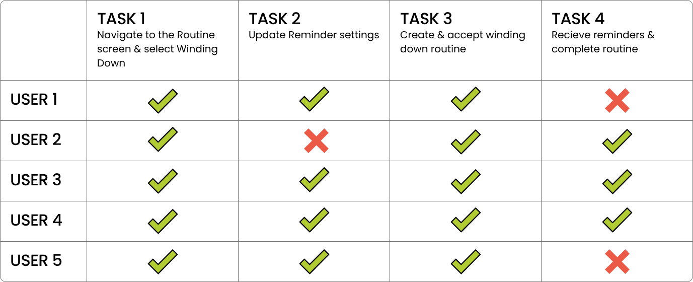Notes: 1. 4 testers were able to update reminder settings in the Winding Down routine card.